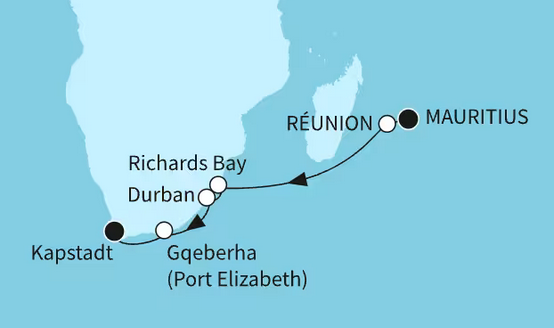Während zuhause die Temperaturen sinken, erwartet Sie auf dieser außergewöhnlichen Reise strahlender Sonnenschein, dramatische Landschaften und das Türkisblau des Indischen Ozeans. Mein Schiff 5 nimmt im Winter 2027/28 erstmals den gesamten Winter über Kurs auf Südafrika und die Inselparadiese des Indischen Ozeans – und verbindet dabei zwei der faszinierendsten Reiseregionen der Welt zu einem unvergesslichen Erlebnis auf See.